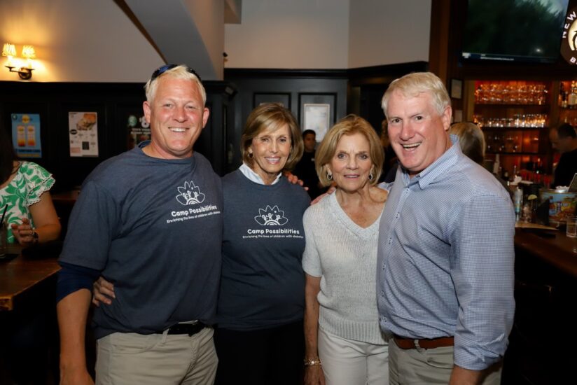 At right, BBC owner Dave Dietz with (l-r) his brother Stephen, mother (Janet) and Sally Dent during event for GBE for Camp Possibilities that raised $65,000.
