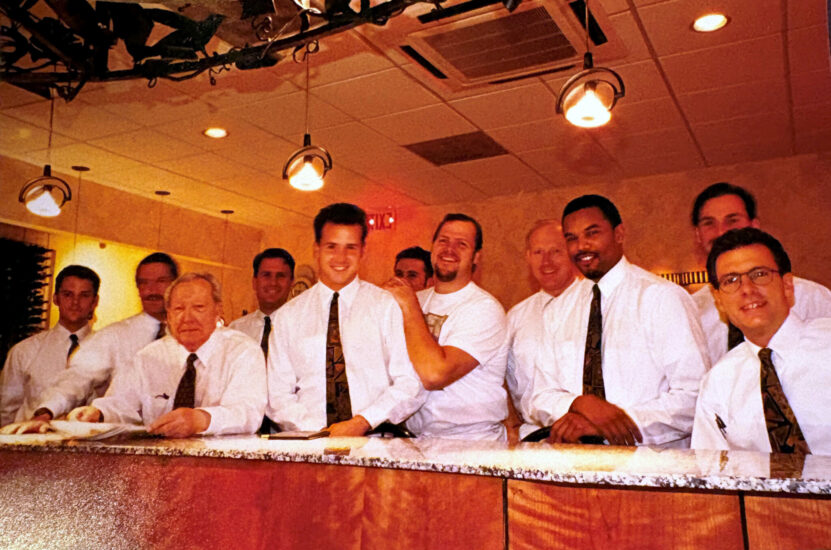 Butler with a team of Toscana servers in 1996. Photo courtesy Dan Butler.