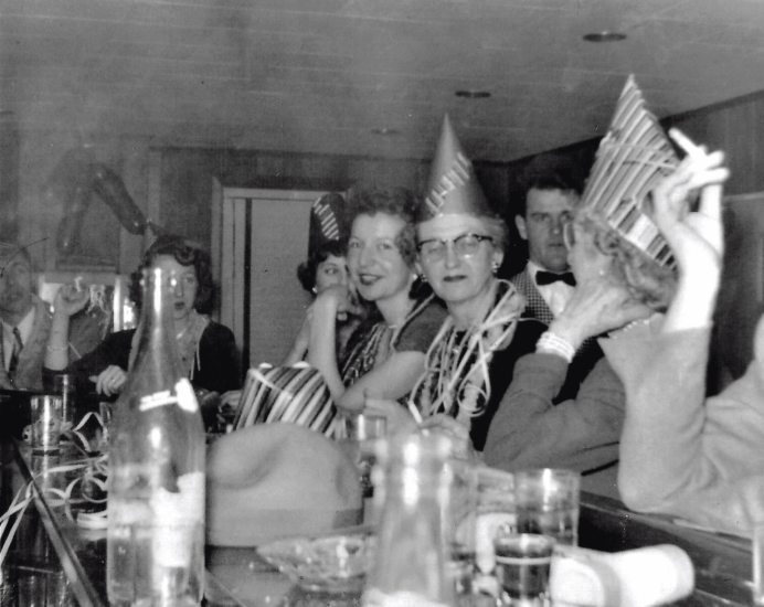 Guests celebrate New Year’s Eve at the bar of Buckley’s Taven (date unknown). Photo courtesy Dennis Buckley grandchildren.